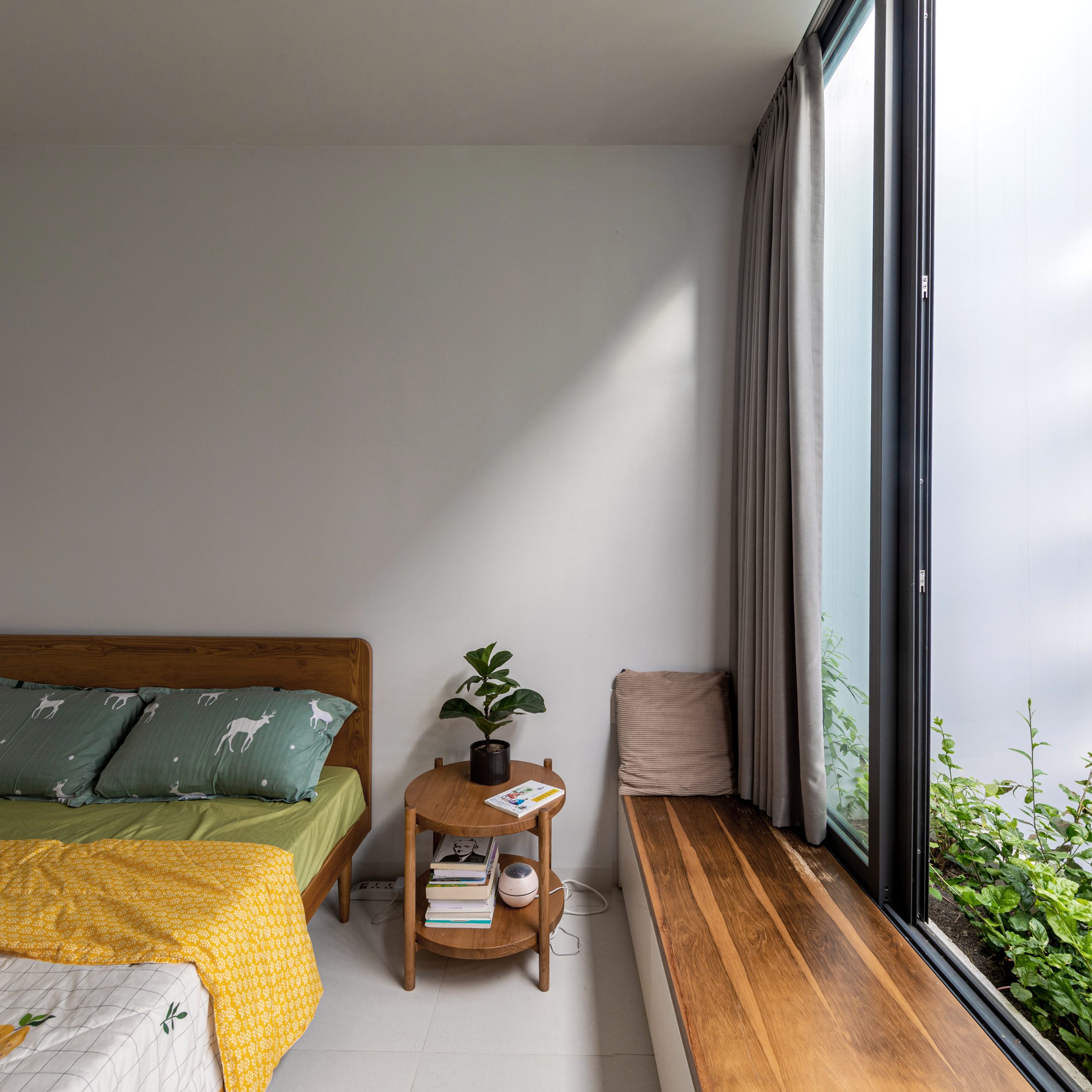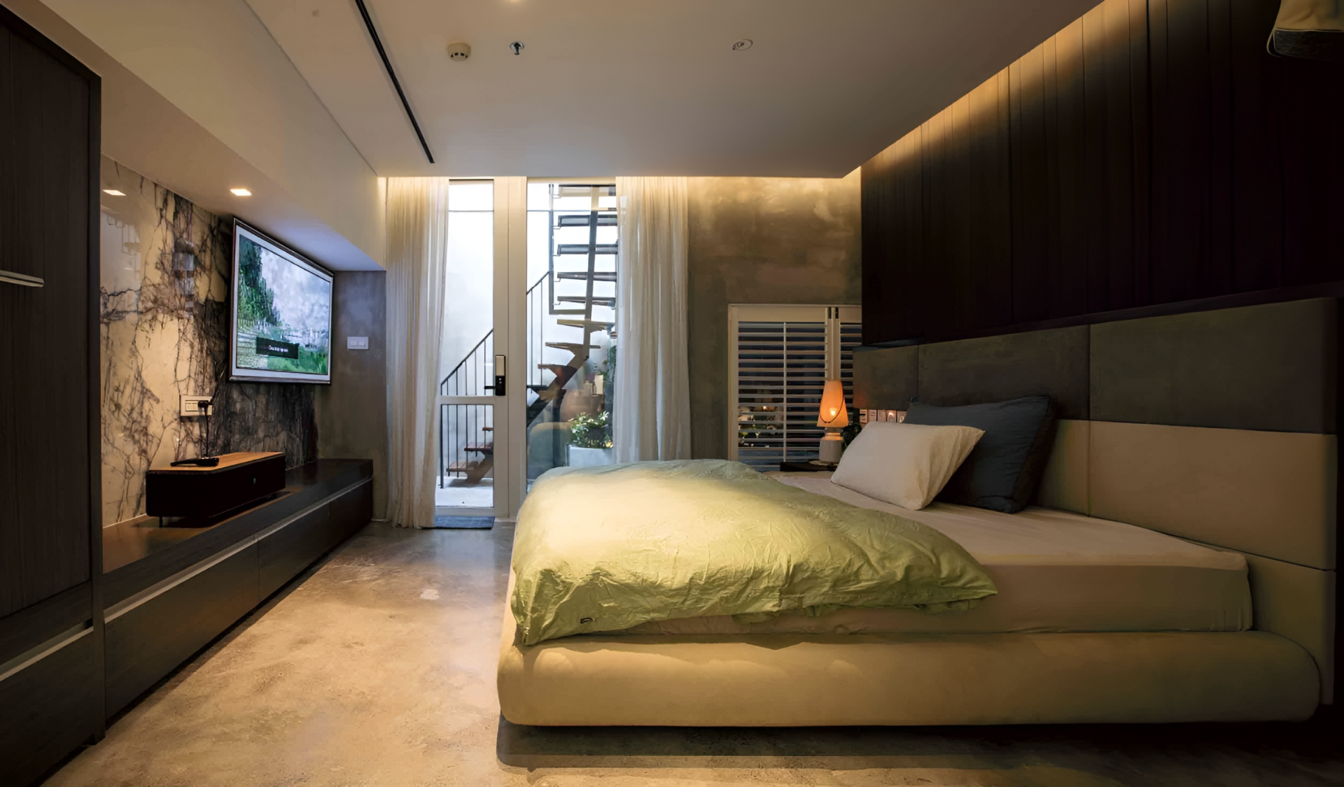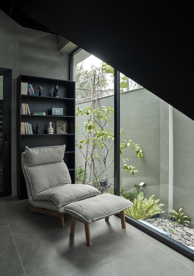 Lối tiếp cận độc lập đến phòng ngủ từ giếng trời ngoài sân vườn, tạo không gian xanh tươi mát và thư giãn.